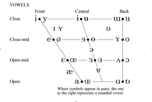 表中:元音的发音, 按嘴张合开程序排序